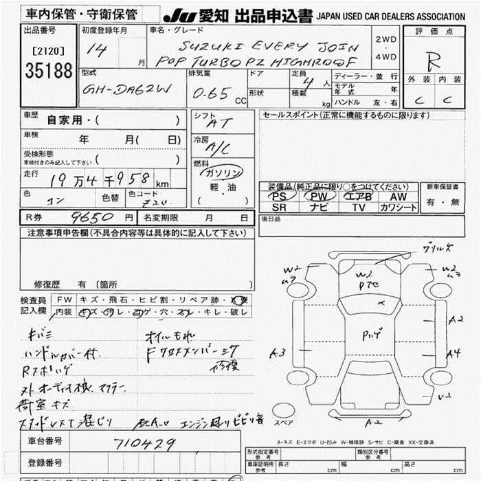SUZUKI EVERY WAGON JOY POP TURBO PZ - лот 35188