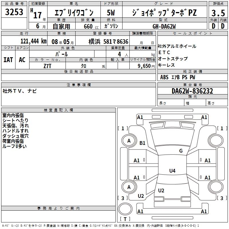 SUZUKI EVERY WAGON JOY POP TURBO PZ - лот 3253