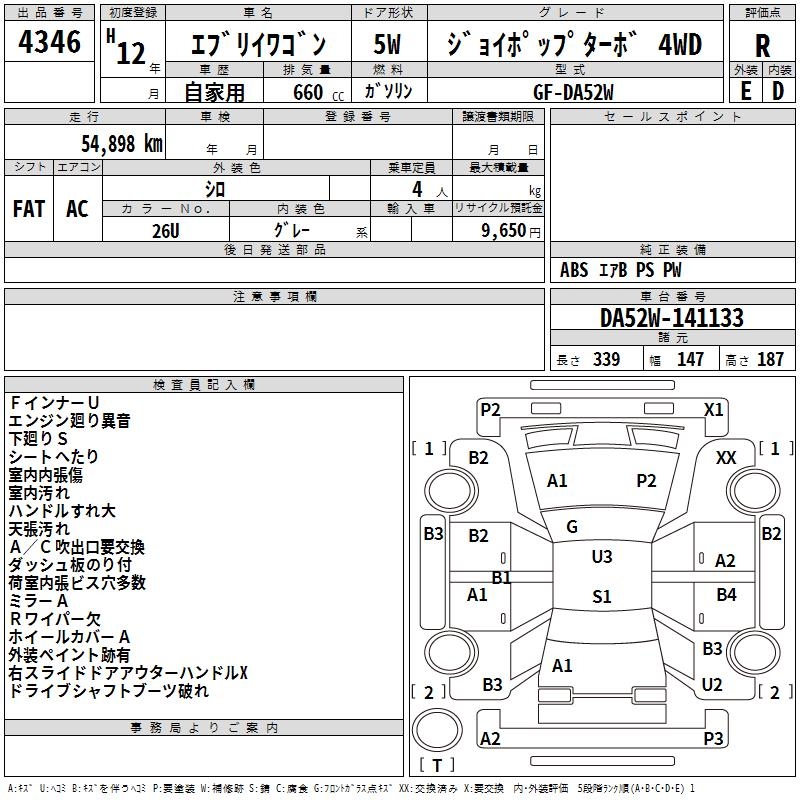 SUZUKI EVERY WAGON JOY POP TURBO 4WD - лот 4346