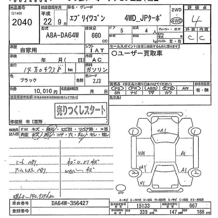 SUZUKI EVERY WAGON 4WD_JP TURBO - лот 2040