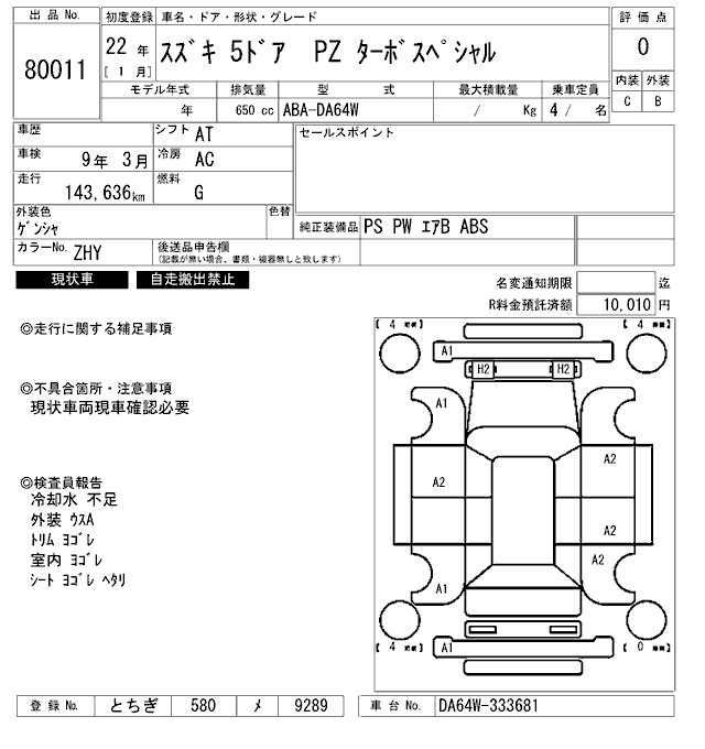 SUZUKI EVERY WAGON PZ TURBO SPECIAL - лот 80011