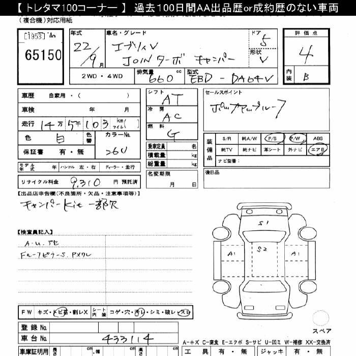 SUZUKI EVERY .. Inter . туристский фургон - лот 65150