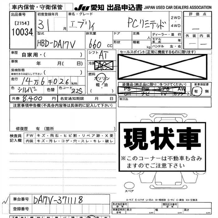 SUZUKI EVERY VAN - лот 10034