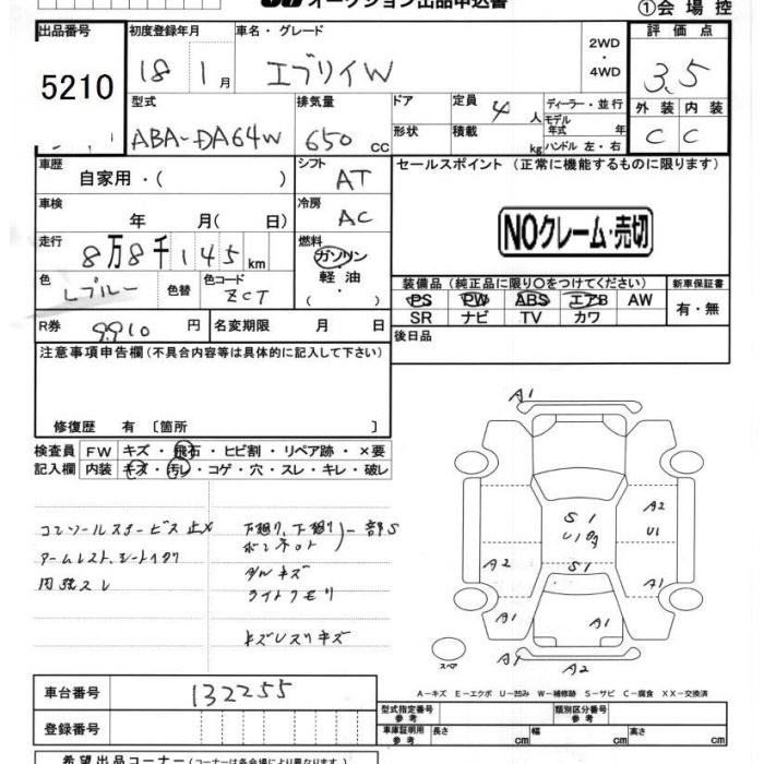 SUZUKI EVERY WAGON - лот 5210