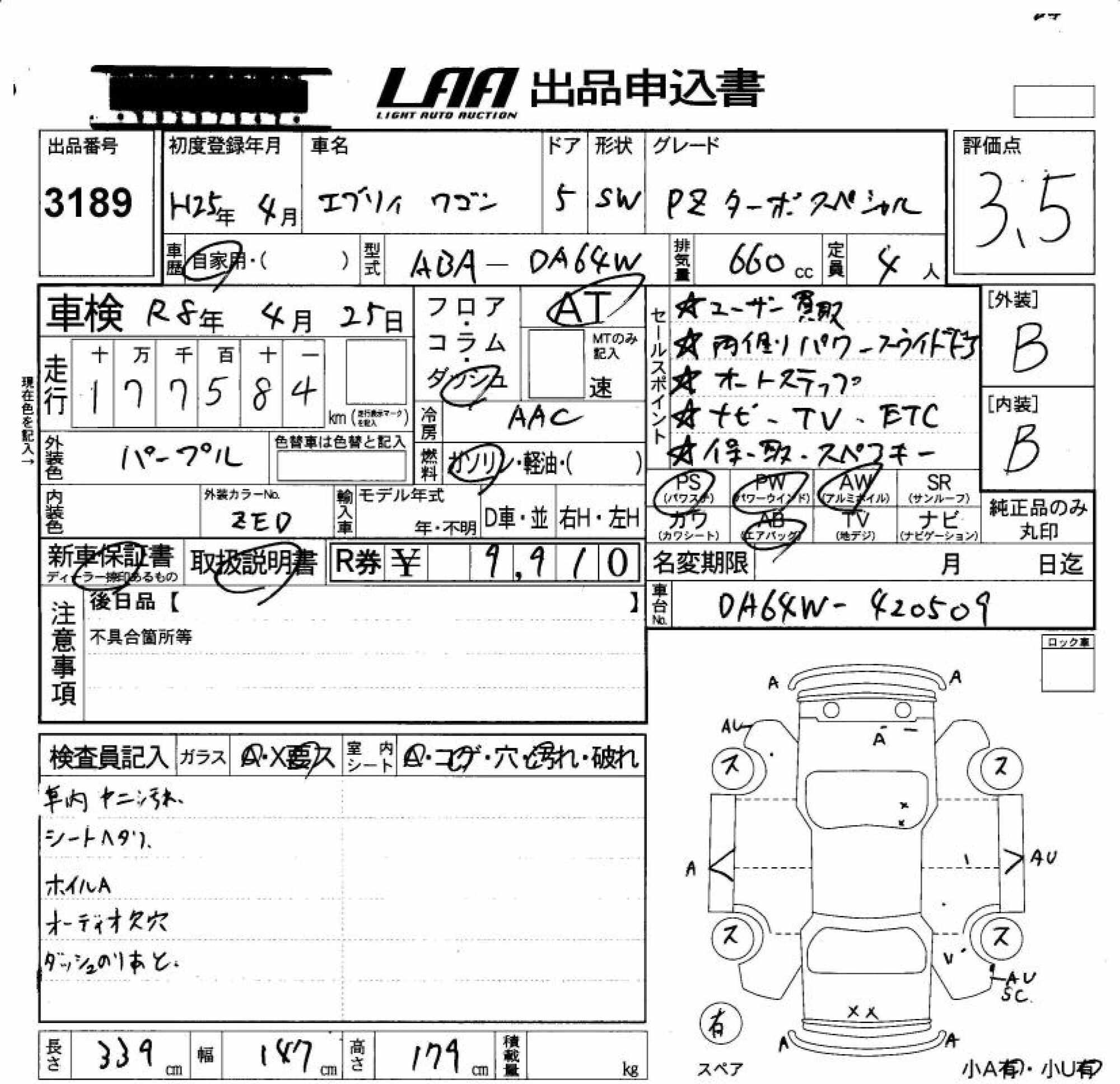 SUZUKI EVERY WAGON - лот 3189