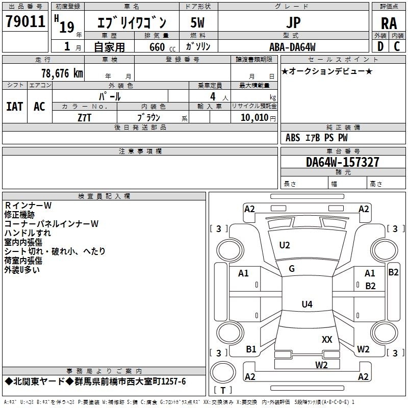 SUZUKI EVERY WAGON - лот 79011