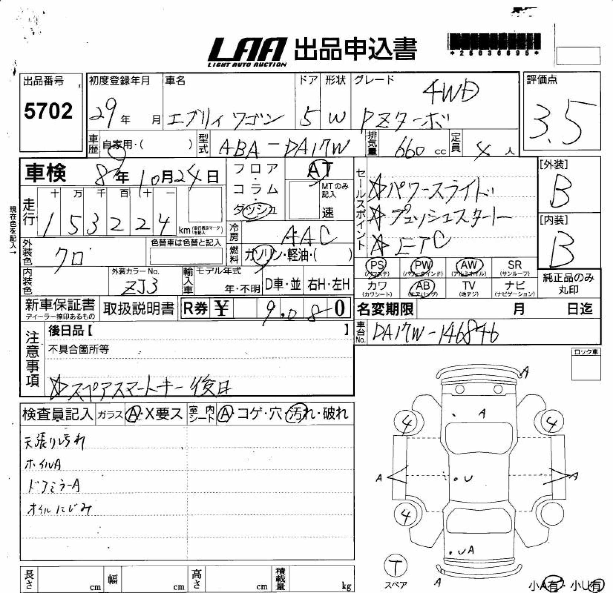 SUZUKI EVERY WAGON - лот 5702