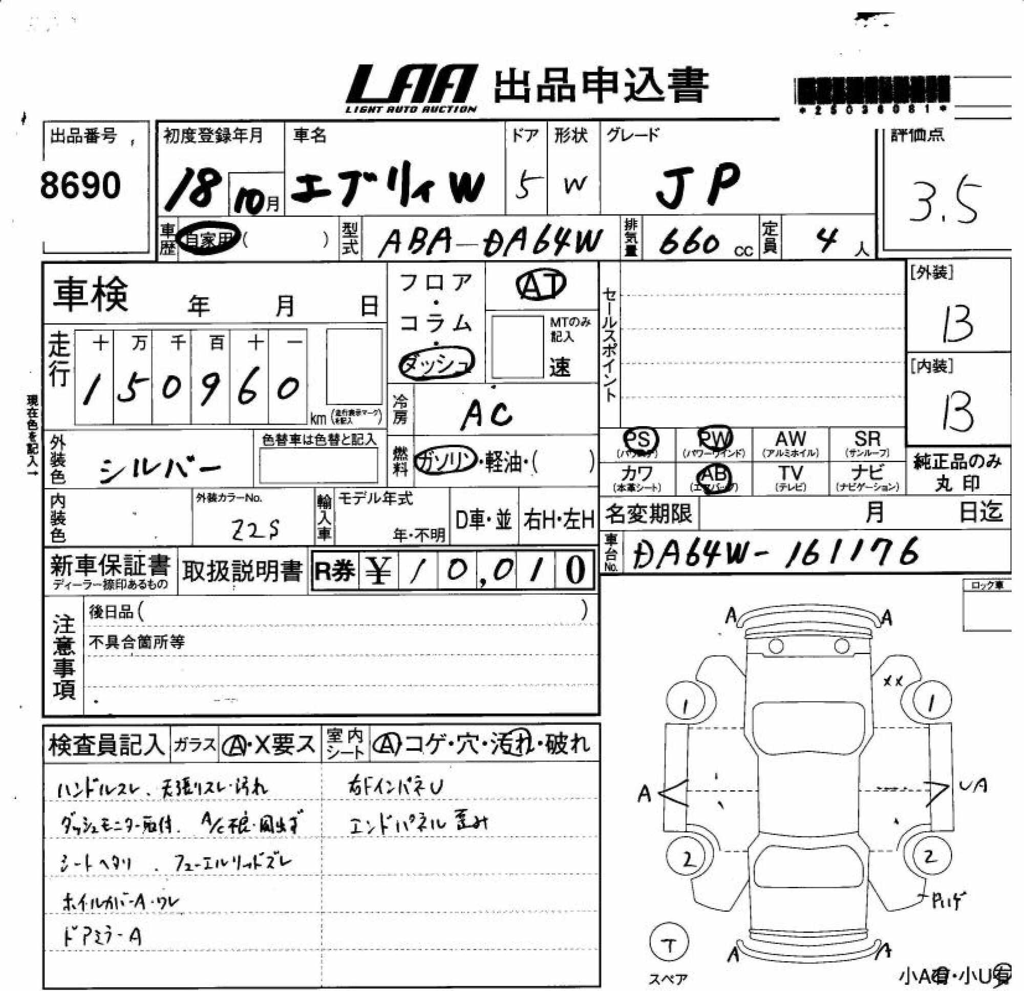 SUZUKI EVERY WAGON - лот 8690