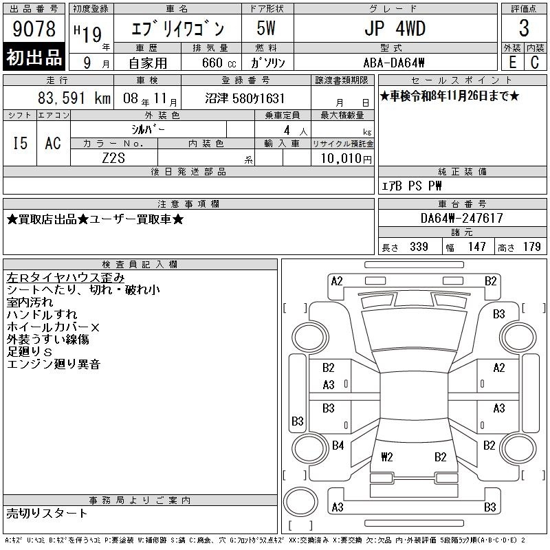 SUZUKI EVERY WAGON - лот 9078