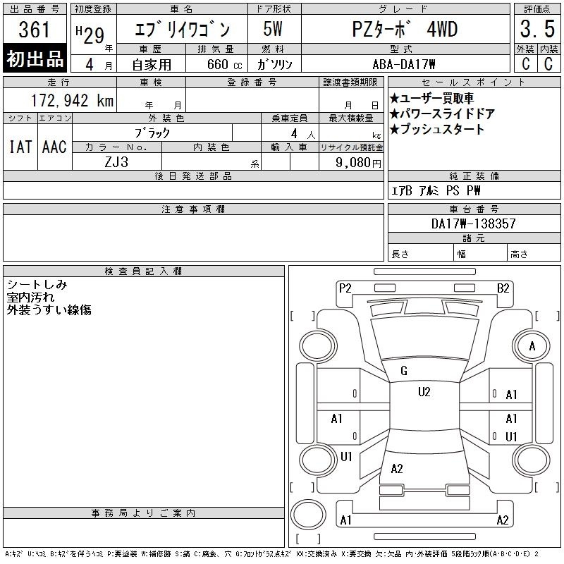 SUZUKI EVERY WAGON - лот 361