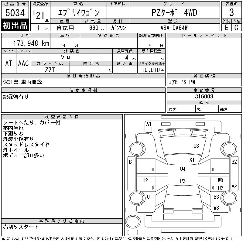 SUZUKI EVERY WAGON - лот 5034