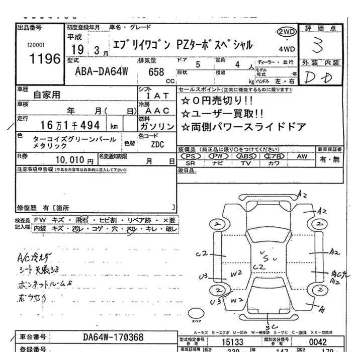 SUZUKI EVERY WAGON - лот 1196