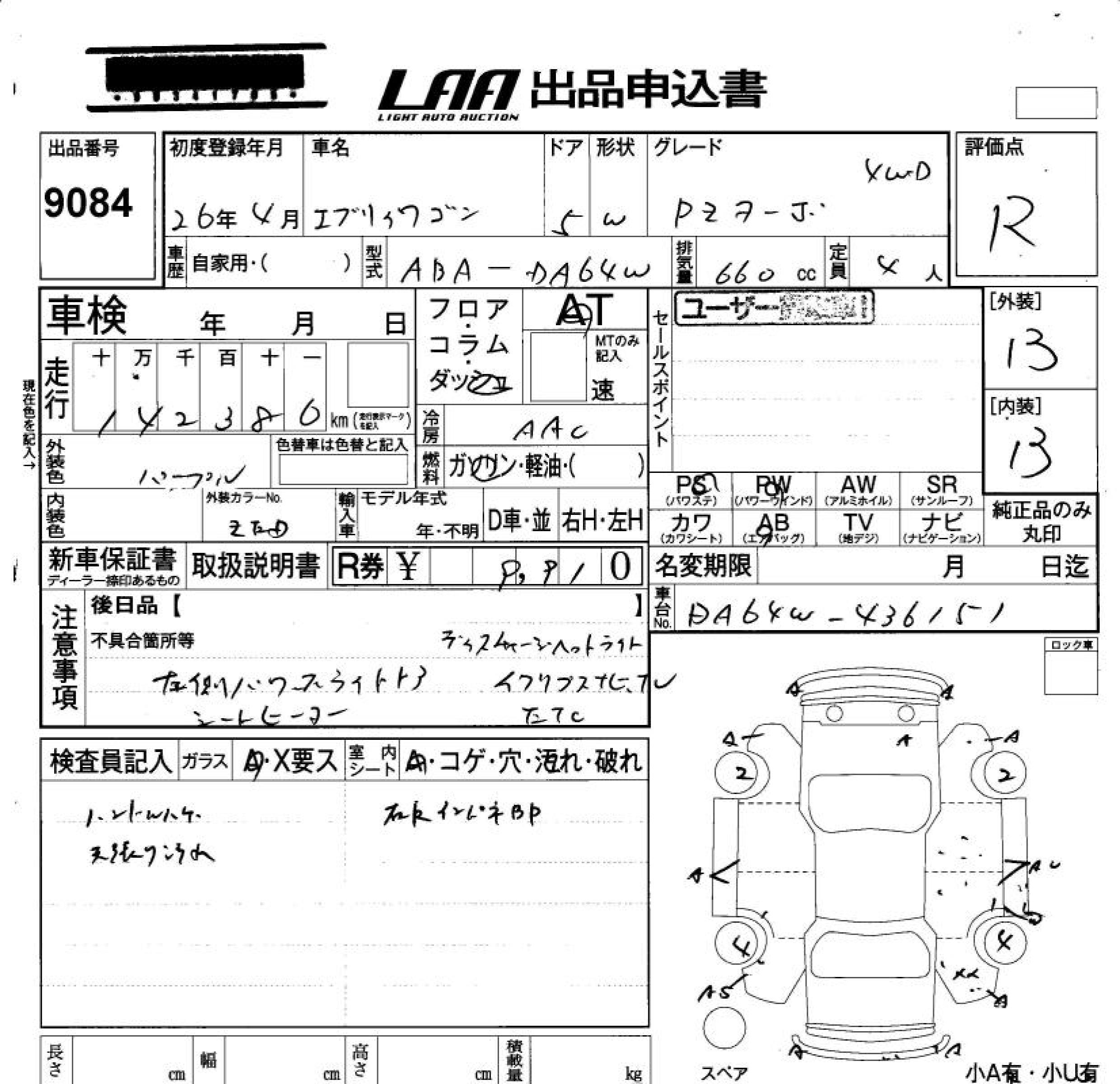 SUZUKI EVERY WAGON - лот 9084