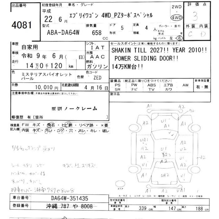 SUZUKI EVERY WAGON - лот 4081