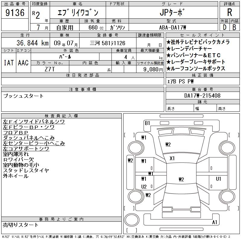 SUZUKI EVERY WAGON - лот 9136