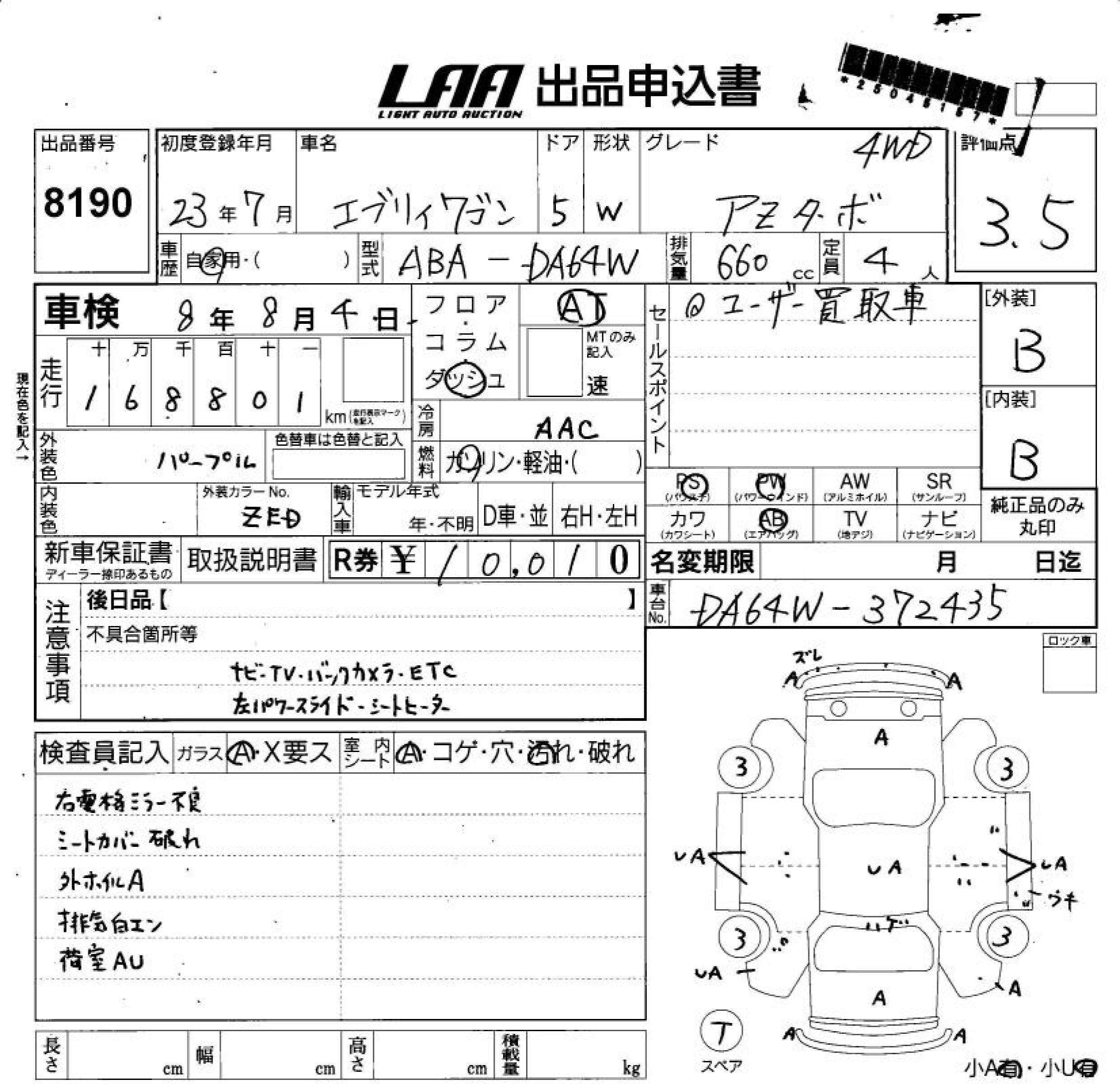 SUZUKI EVERY WAGON - лот 8190
