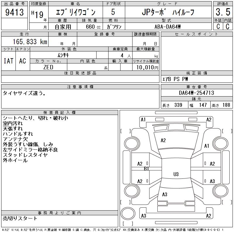 SUZUKI EVERY WAGON - лот 9413