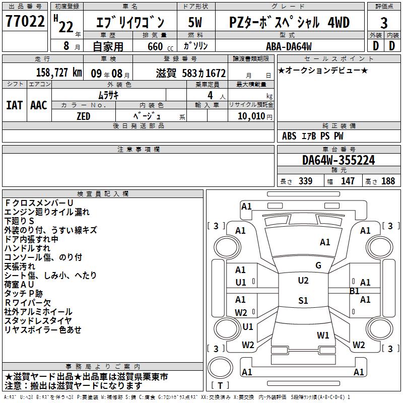 SUZUKI EVERY WAGON - лот 77022