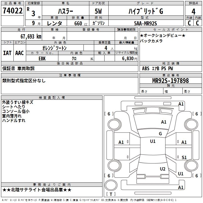 SUZUKI HUSTLER HYBRID G - лот 74022