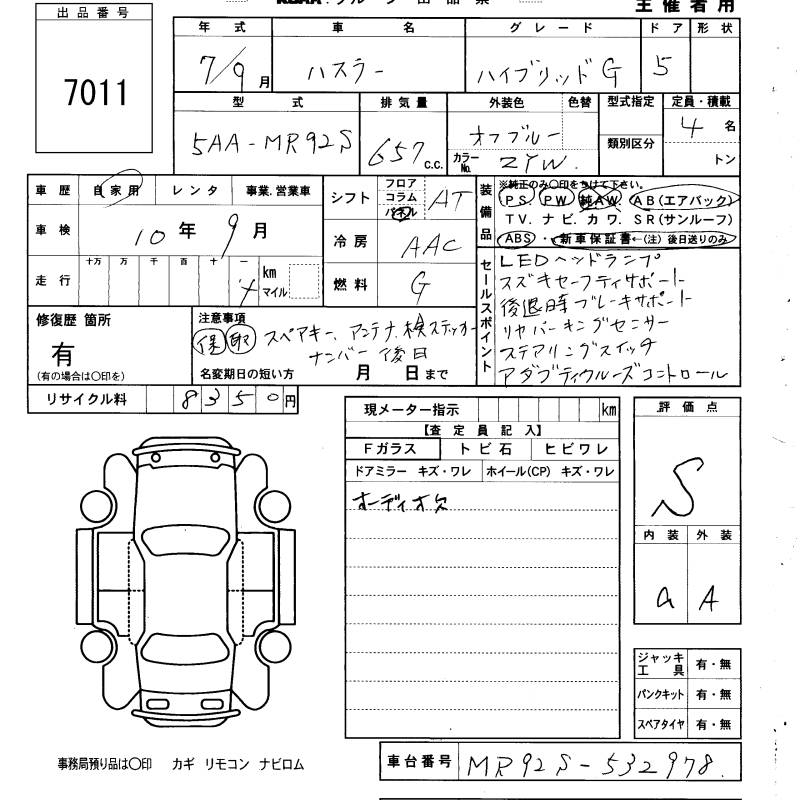 SUZUKI HUSTLER HYBRID G - лот 7011