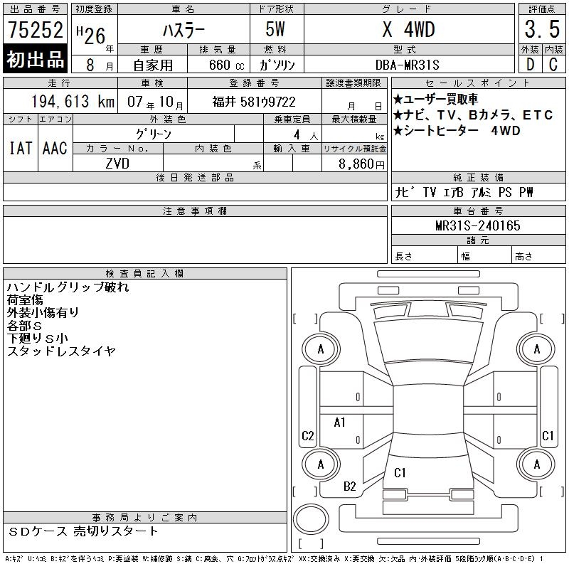 SUZUKI HUSTLER X 4WD - лот 75252
