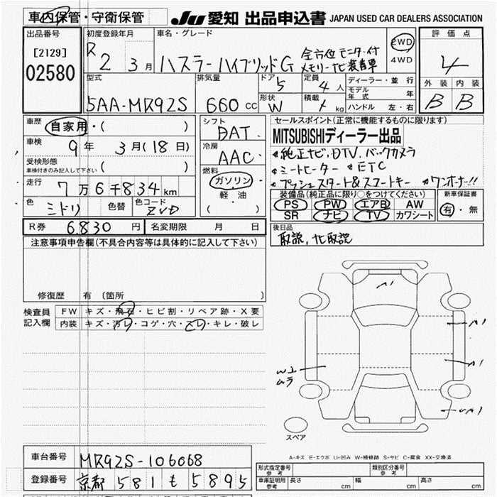 SUZUKI HUSTLER HYBRID G - лот 2580