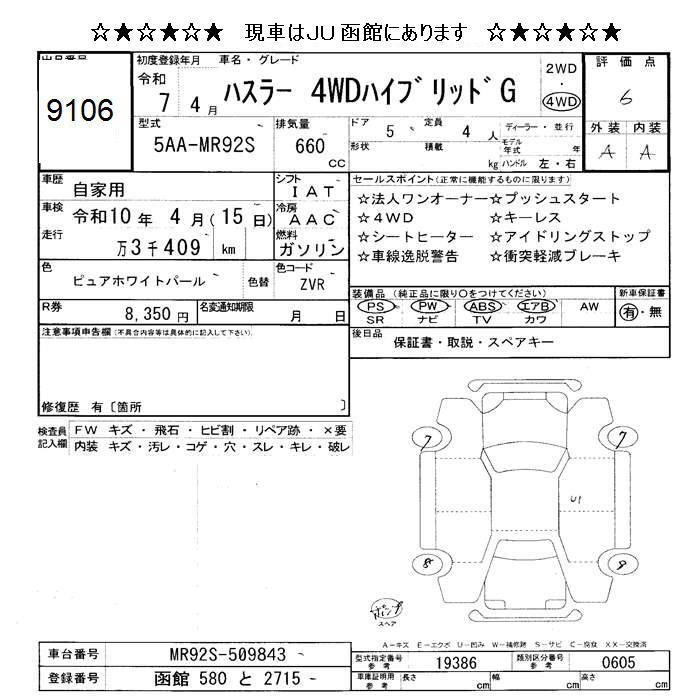 SUZUKI HUSTLER 4WD HYBRID G - лот 9106