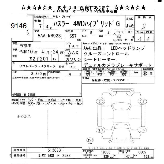 SUZUKI HUSTLER 4WD HYBRID G - лот 9146