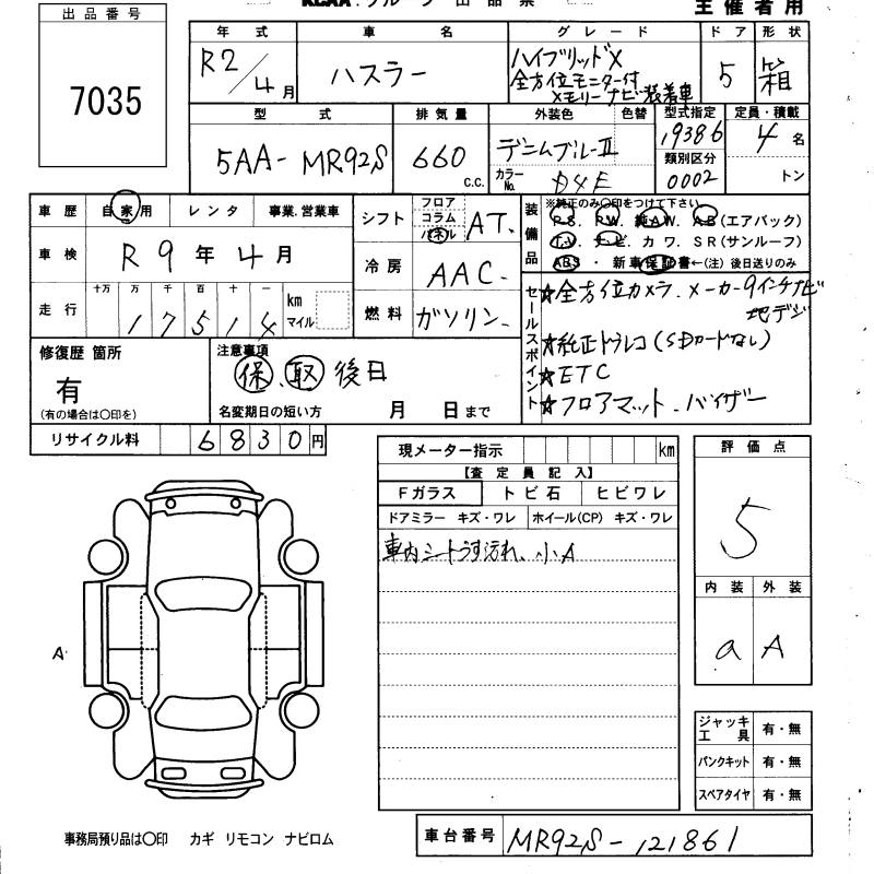 SUZUKI HUSTLER HYBRID XZEN HOWE I MONITOR - лот 7035