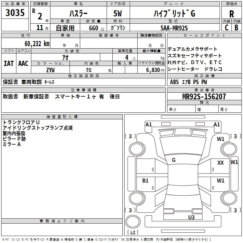 SUZUKI HUSTLER HYBRID G - лот 3035