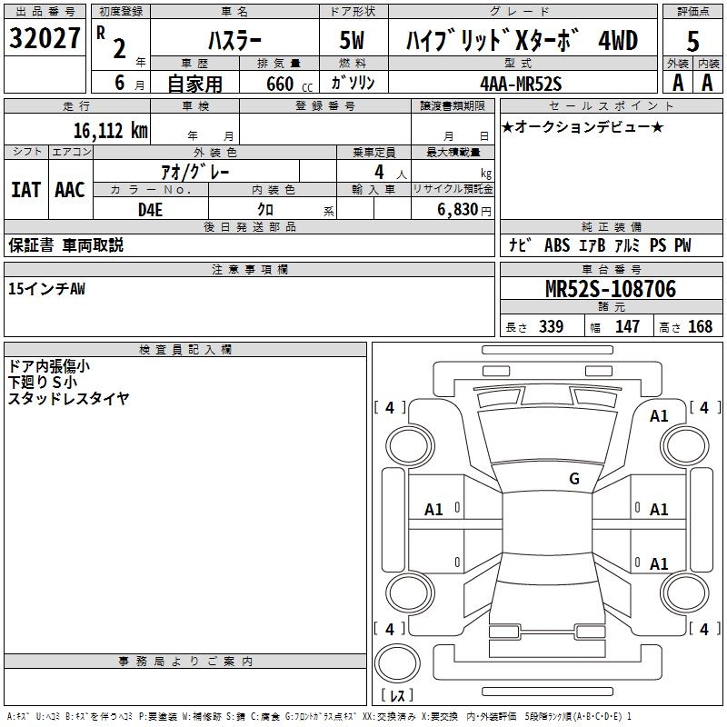 SUZUKI HUSTLER HYBRID X TURBO 4WD - лот 32027