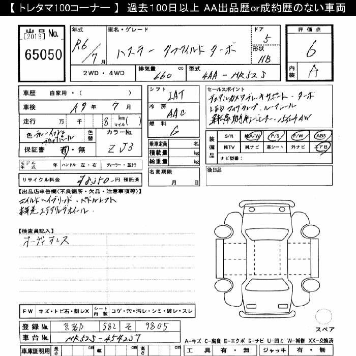 SUZUKI HUSTLER TOUGH WILD TURBO - лот 65050