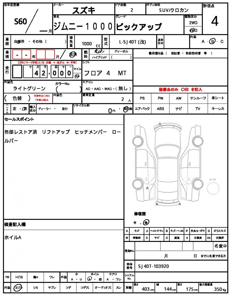 SUZUKI JIMNY 1000 - лот 43941