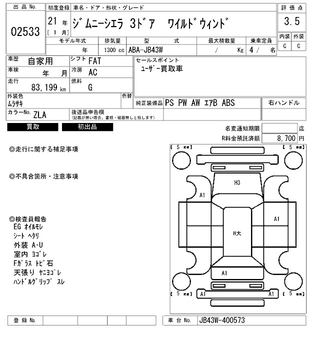 Все аукционы SUZUKI JIMNY SIERRA