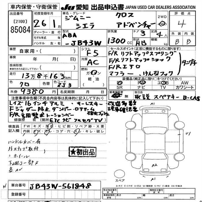SUZUKI JIMNY SIERRA CROSS ADVENTURE 4WD - лот 85084