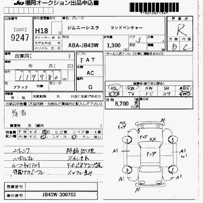 SUZUKI JIMNY SIERRA LAND VENTURE - лот 9247