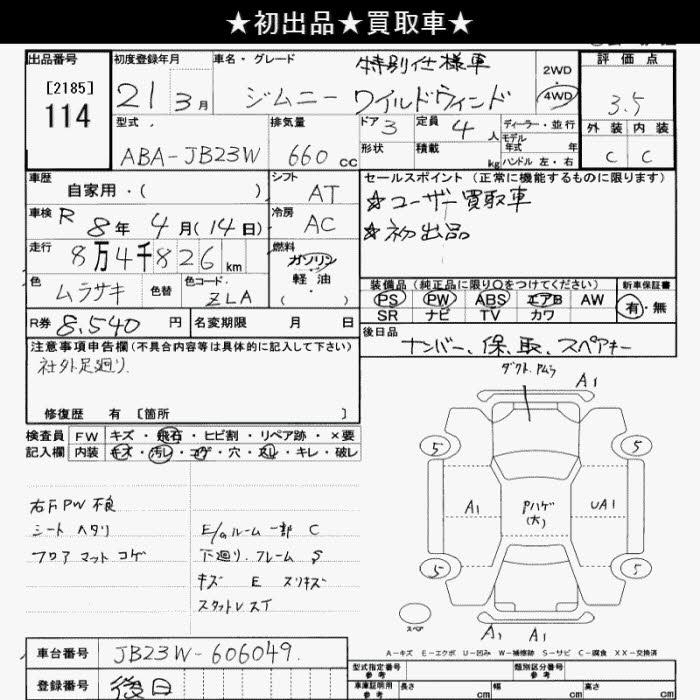 SUZUKI JIMNY WIDE 4WD WILD WIND SPECIAL RESOURCE CAR - лот 114