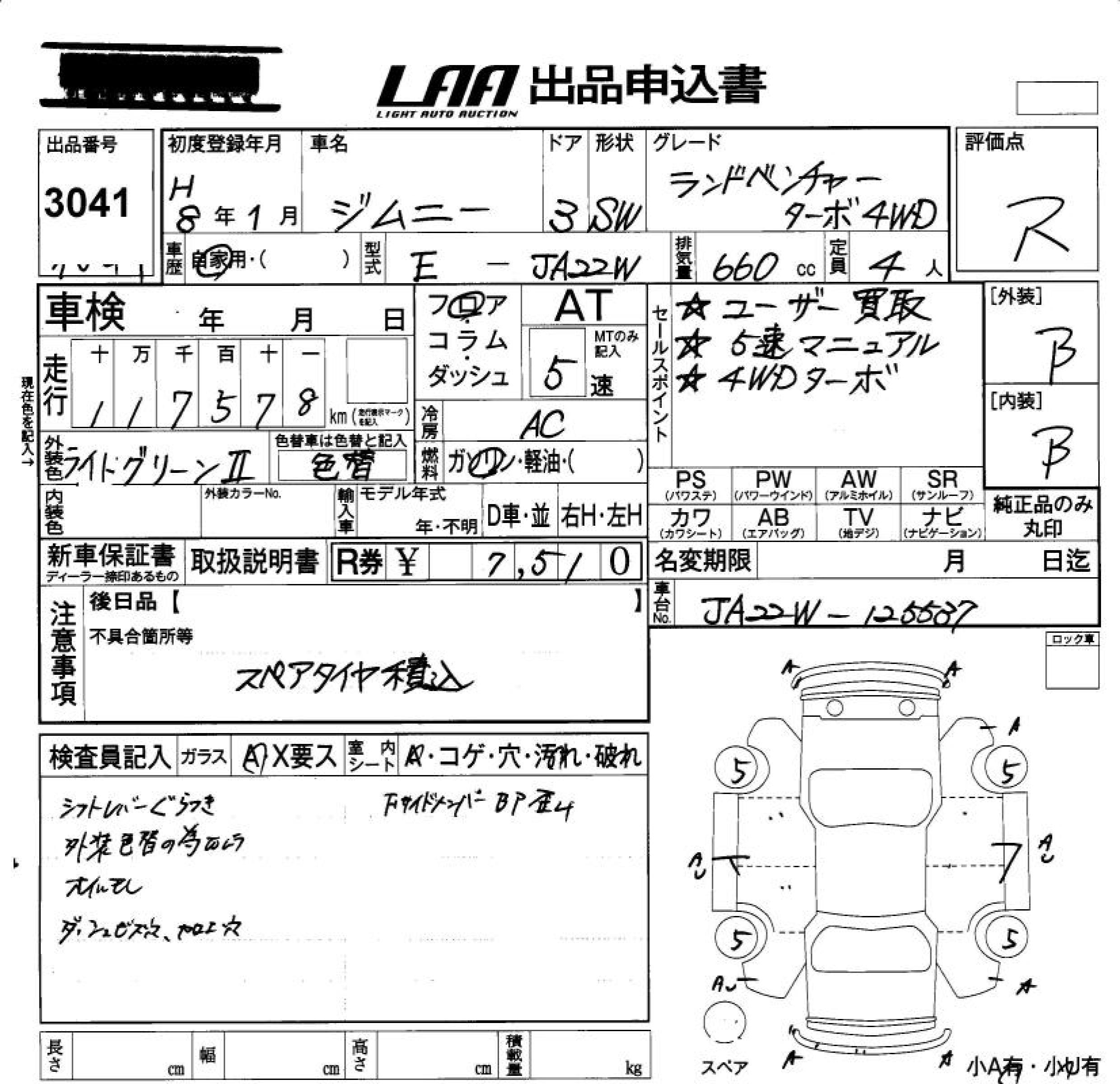 SUZUKI JIMNY LAND VENTURE TURBO 4W - лот 3041