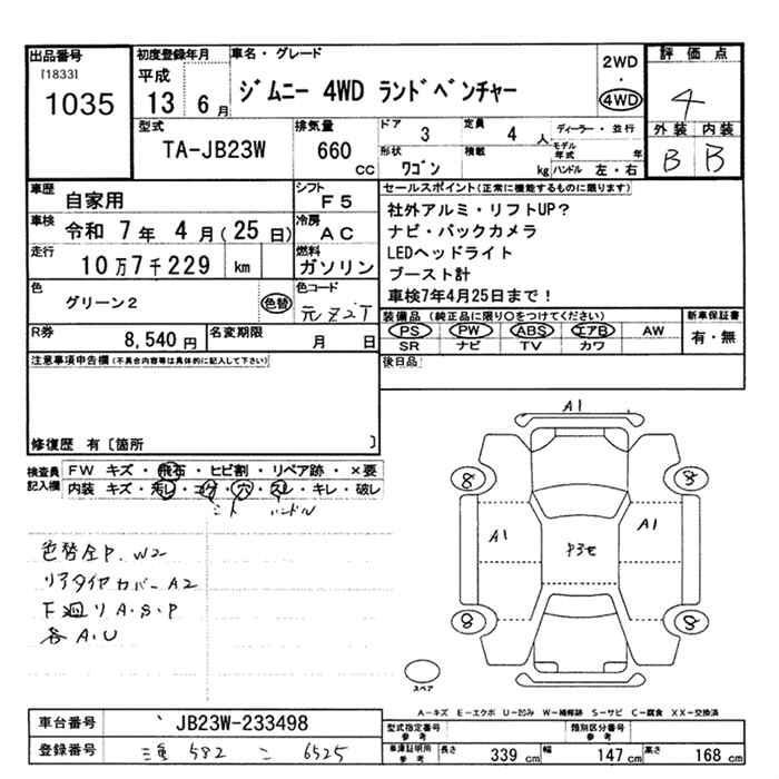 SUZUKI JIMNY 4WD land venture - лот 1035