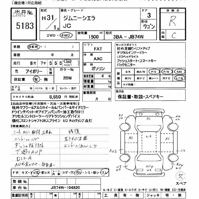Все аукционы SUZUKI JIMNY SIERRA