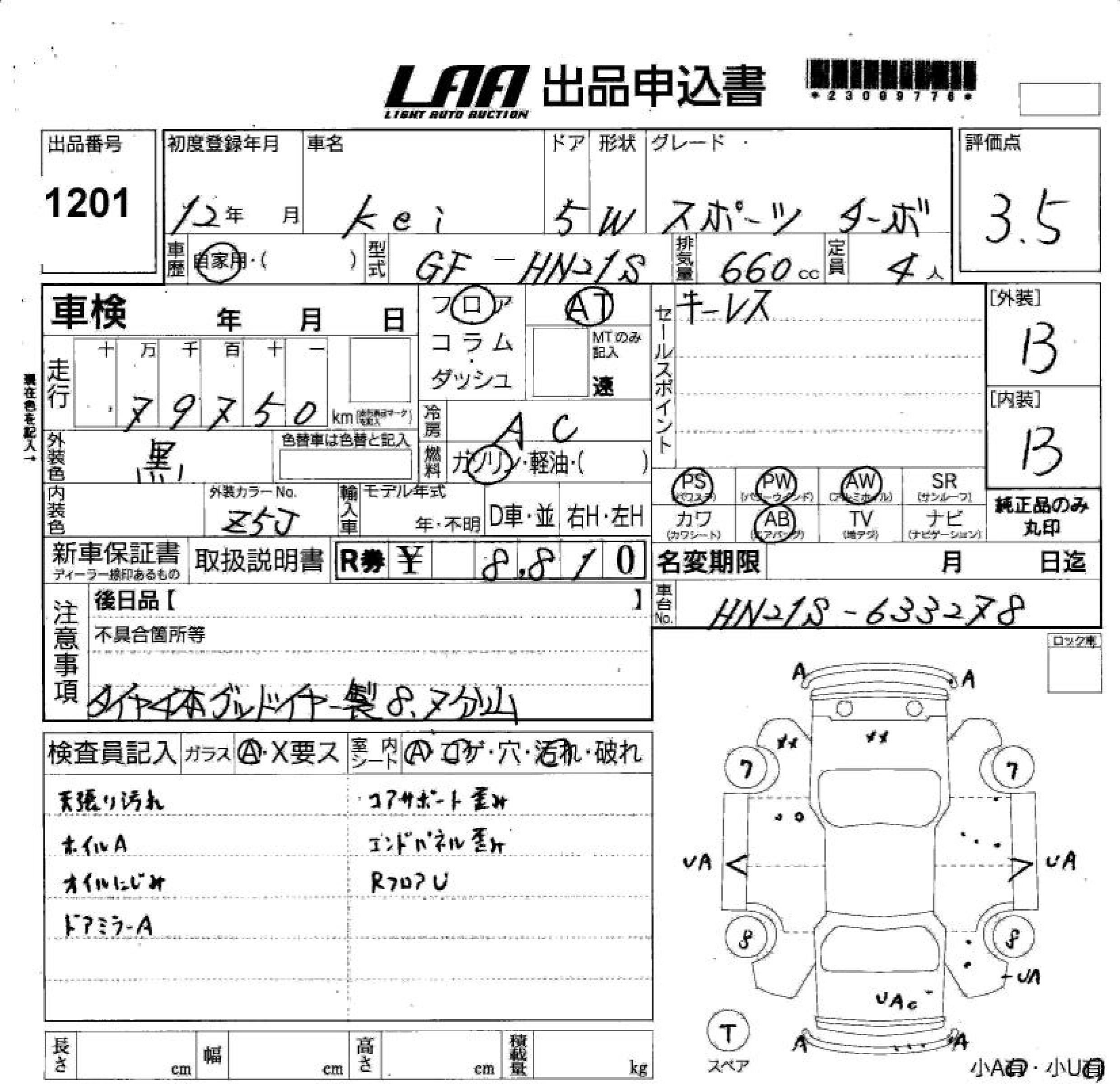 SUZUKI KEI TB - лот 1201