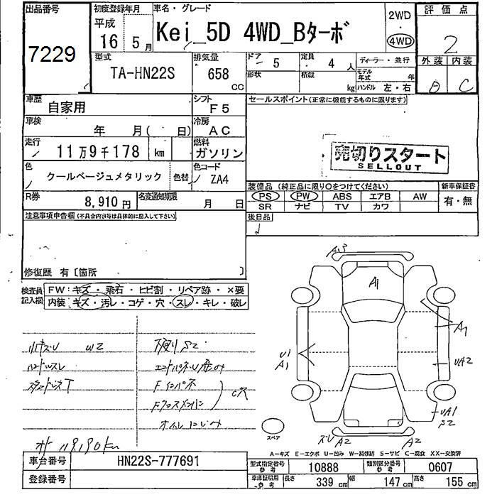 SUZUKI KEI 4WD B TURBO - лот 7229