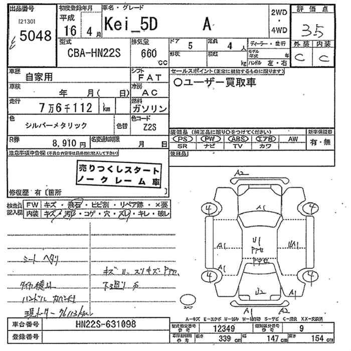 SUZUKI KEI A - лот 5048
