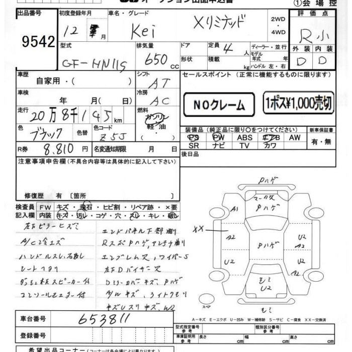 SUZUKI KEI X LTD - лот 9542