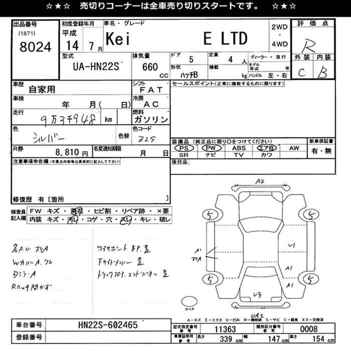 SUZUKI KEI E LTD - лот 8024