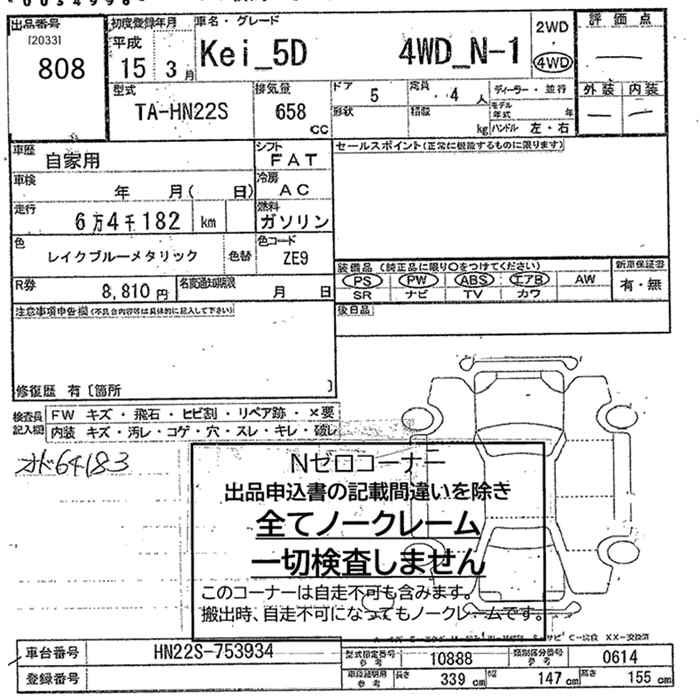 SUZUKI KEI 4WD N-1 - лот 808