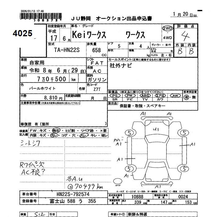 SUZUKI KEI WORKS - лот 4025