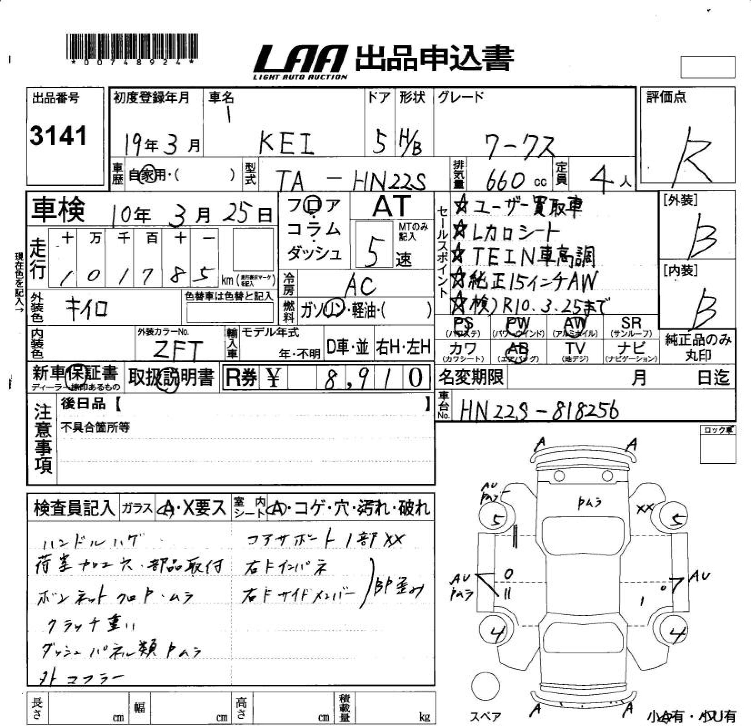 SUZUKI KEI WORKS - лот 3141
