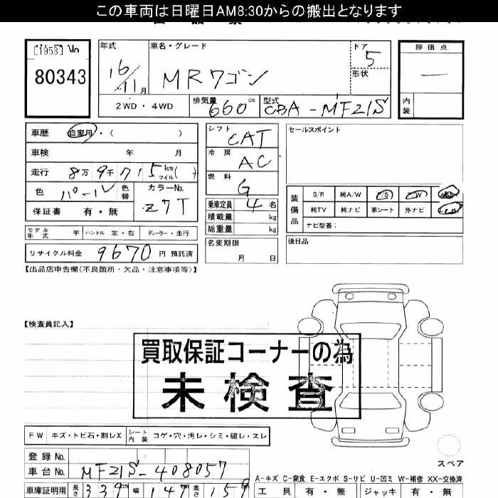 SUZUKI MRWAGON - лот 80343