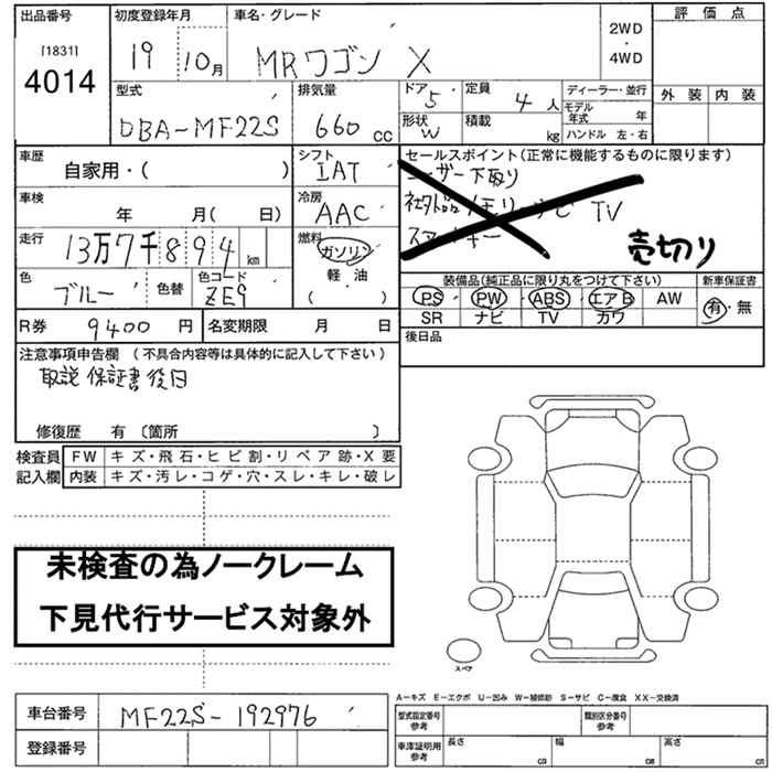 Все аукционы SUZUKI MRWAGON